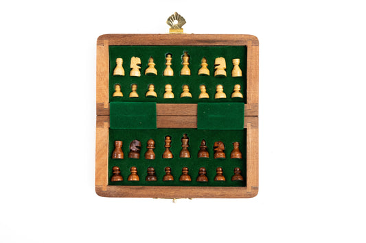 Chess Board – 5-Inch Fully Magnetic Foldable Set in Premium Wood with Handcrafted Coins | Travel-Friendly
