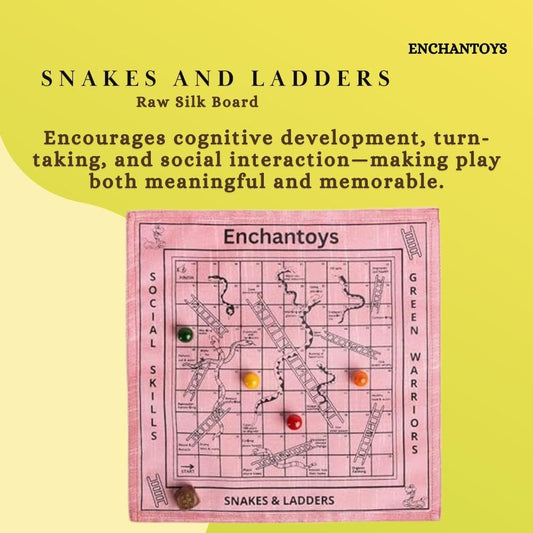 Snakes and Ladders Native Game on Raw Silk – Handcrafted, Eco-Friendly, Traditional Indian Board Game for Kids & Adults