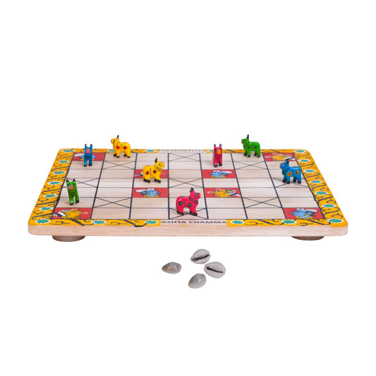 Handpainted Ashta Chamma Peeta Board Game with Traditional Horse Coins